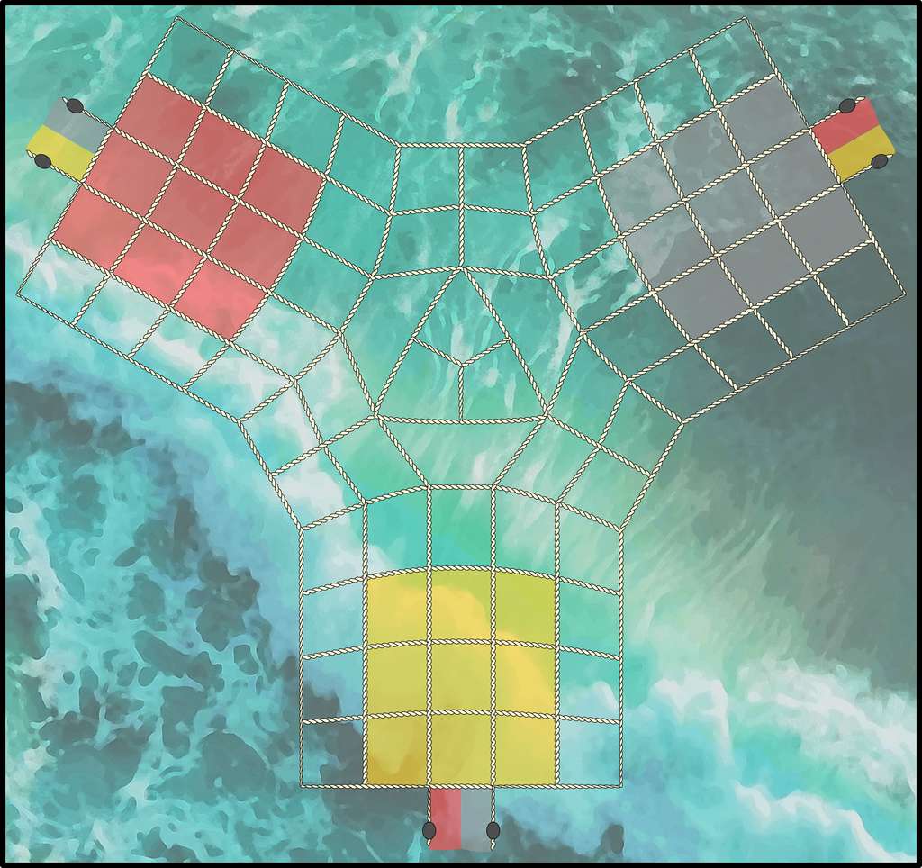 Jouez à Aquatika à 3 joueurs ! Ce plateau de jeu fait maison s'inspire des plateaux de jeu d'échecs 3 joueurs avec cases carrées et de géométrie hyperbolique.
