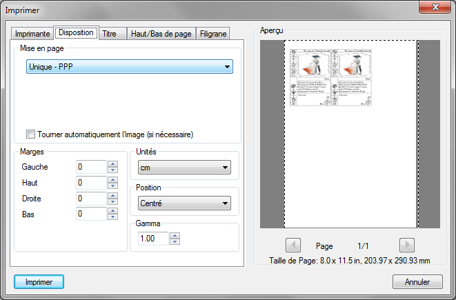 La méthode suivante permet d'imprimer des cartes de jeu à l'échelle "carte Magic" comme on en trouve par exemple sur ce site. Ces cartes sont de dimension 372x520 pixels et sont conçus pour une résolution de 150 dpi, ce qui correspond au format standard de carte 6,30x8,80 cm.